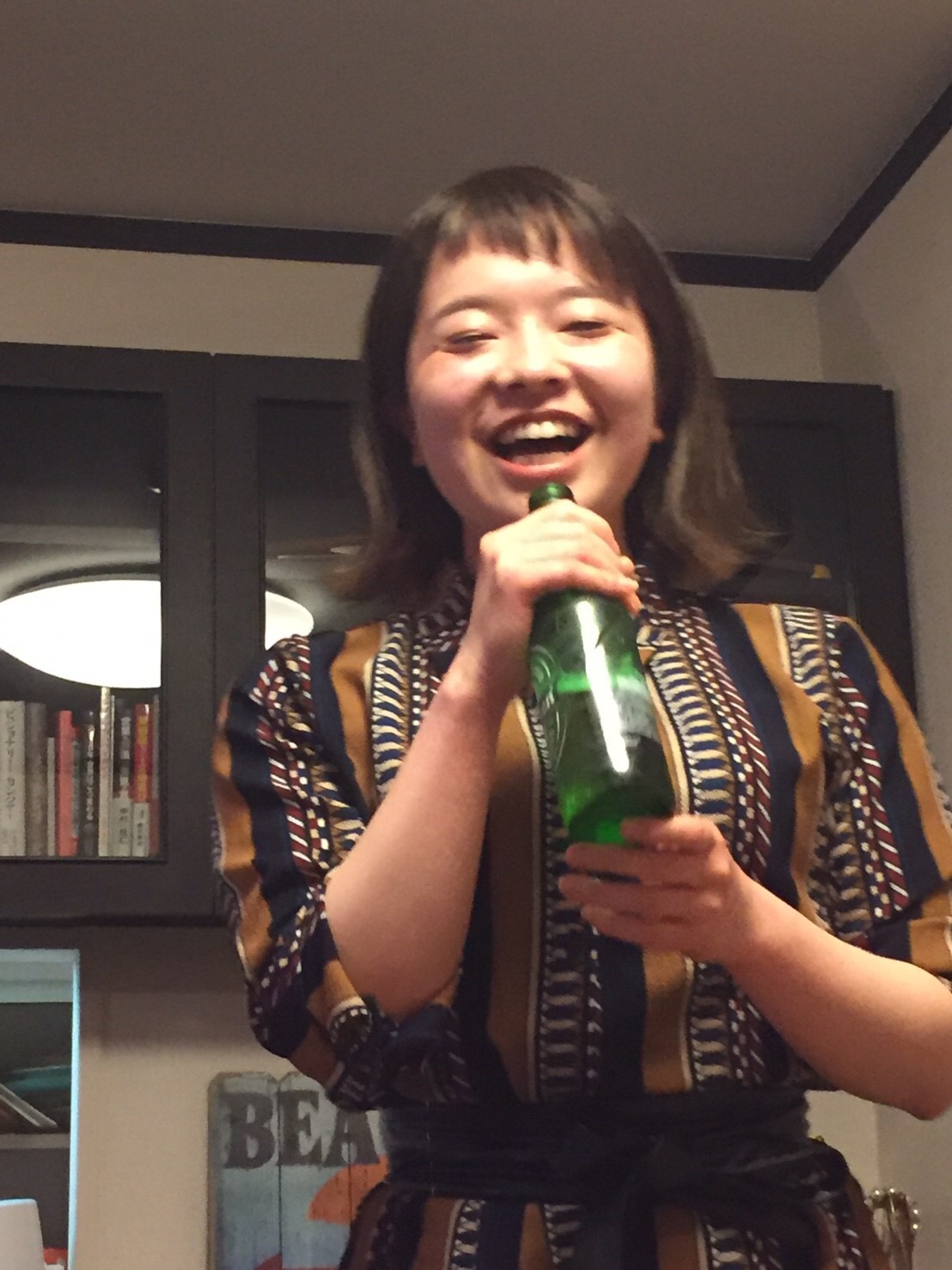 オーナー夫妻の食卓で、ビールをマイクにMISIAのEVERYTHINGを