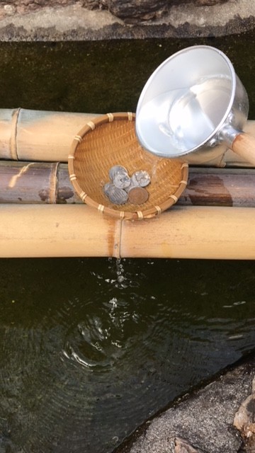 熊野神社ではお金を洗い清め、しっかりそのお金でおいも買いました笑